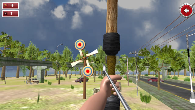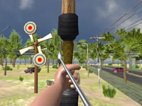 Vous étiez simplement parti vous promener en ville, quand soudain, l'envie de faire du tir à l'arc vous a pris. C'est une bonne chose que vous ne vous promeniez jamais sans votre arc, n'est-ce pas ? Vous allez donc pouvoir vous exercer et nous démontrer vos talents de tireur. Il faudra que vous visiez adroitement et que vous plantiez vos flèches dans la cible, de préférence dans sa partie rouge. Bandez l'arc et relâchez-le pour tirer une flèche. Si vous réussissez à toucher toutes les cibles, vous pourrez passer au niveau suivant. Bonne chance à tous ! Utilisez la souris pour jouer à ce jeu.