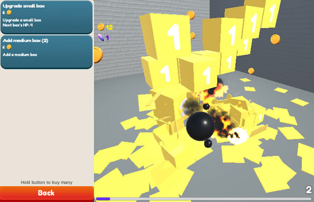 Boombox Inc. est un nouveau jeu de stratégie dans lequel votre objectif sera simplement de détruire toutes les boîtes qui tomberont de votre écran. Il faudra lancer des explosifs dessus pour faire rapidement place nette. Cliquez à maintes reprises pour envoyer des bombes. Faites tout exploser et dépensez de l'argent pour faire évoluer le jeu au fur et à mesure, par exemple en faisant tomber plus de boîtes, ou encore en augmentant la qualité de vos explosifs. Bon jeu à tous et amusez-vous bien ! Utilisez la souris pour jouer à ce jeu.