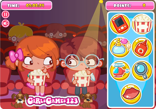 Sarah aime beaucoup aller au cinéma, particulièrement quand elle est accompagnée par son amoureux, Tim. Malheureusement, ce dernier a choisi un film très ennuyeux, et Sarah s'embête. Elle a plein d'idées pour s'occuper, mais personne ne doit la voir. Aidez Sarah à envoyer des textos, à se maquiller, à embrasser Tim, et bien plus encore. Chaque mini-jeu que vous terminerez avant la fin du temps imparti vous rapportera des points. Si un vigile vous voit, le jeu prendra fin. Soyez rapide et évitez de vous faire voir ! Le but du jeu est d'obtenir le plus de points possible. Bonne chance et amusez-vous bien ! Utilisez la souris et le clavier pour jouer à ce jeu.