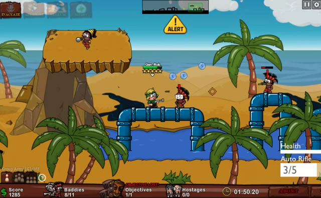 Vous êtes un soldat hors pair qui a été envoyé sur l'île des factions pour venir à bout d'un féroce ennemi qui a pris possession des lieux. Vous devez monter un commando armé et remplir des missions à travers l'île. Il faudra détruire toutes les bases ennemies et leurs effectifs. Vous gagnerez de l'argent lors de vos batailles contre l'ennemi. Avec cet argent, vous pourrez recruter différents types de soldats et acheter quelques engins pour être plus puissant. À vous d'éradiquer ces envahisseurs et de permettre à l'île de retrouver sa paisibilité !