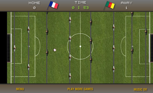Si vous avez un peu de temps libre, et un ami motivé, vous pouvez toujours jouer au babyfoot ! Cet objet encombrant ne se trouvant pas chez tout le monde, nous vous proposons une alternative virtuelle à ce jeu mythique. Affrontez l'intelligence artificielle de l'ordinateur, ou jouez à un contre un avec l'un de vos amis. Vous aurez le choix entre 40 pays et vous pourrez incarner celui que vous préférez. Il paraît qu'il existe une Coupe du Monde de babyfoot, alors vous allez devoir vous entraîner un peu si vous voulez être au niveau pour le jour J ! Ce jeu se joue avec Haut et Bas ou W et S pour contrôler le babyfoot.