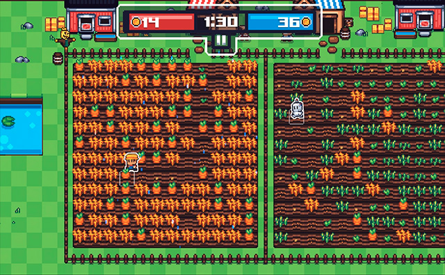 Préparez-vous à une compétition agricole trépidante où votre objectif est de surpasser votre adversaire en un temps record. Dans Farm Battles, vous disposez de trois minutes pour labourer votre terrain, semer diverses cultures et récolter des profits croissants. Mettez en place la bonne stratégie en visitant votre ferme pour acquérir des power-ups uniques, comme des tempêtes ou des pluies, afin de perturber les plans de votre rival. L'alliance d'une mécanique dynamique et d'un univers humoristique de rivalité agricole garantit des parties à la fois amusantes et compétitives. Affinez vos stratégies et démontrez que vous êtes le meilleur cultivateur, amusez-vous bien !