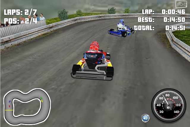 Bienvenue dans Go Kart ! Vous allez être au volant d'un kart que vous choisirez dans un premier temps. Le but du jeu est de terminer les 7 tours de circuit avant vos adversaires afin de pouvoir débloquer la suite du jeu. Prêt à montrer vos compétences ? Go, go, go ! Utilisez les touches fléchées pour jouer à ce jeu.