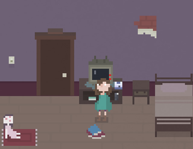 Ce soir, vous êtes seule à la maison, et vous courez un grand danger. Entre le fantôme qui se trouve dans votre chambre, la poupée qui veut votre chat et le rat géant qui erre dans une pièce remplie de livres, vous allez devoir faire très attention si vous voulez rester en vie. Il faudra que vous exploriez la maison tout en interagissant avec certains objets. Récupérez une arme, éliminez les monstres, et faites en sorte de ne pas mourir avant l'heure ! Utilisez les touches fléchées pour vous déplacer, A pour interagir avec un objet et S pour le prendre ou le poser.