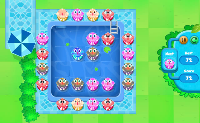 Les poissons ont besoin d'évoluer dans le bassin, mais le nombre de places est limité. Poussez les poissons dans le bassin de manière à créer des groupes de trois ou plus pour les fusionner. Réfléchissez à la meilleure stratégie pour vos combinaisons. Il y a 7 types de poissons différents et la partie se termine lorsque vous ne pouvez plus jouer de coups. Amusez-vous bien et bon score !