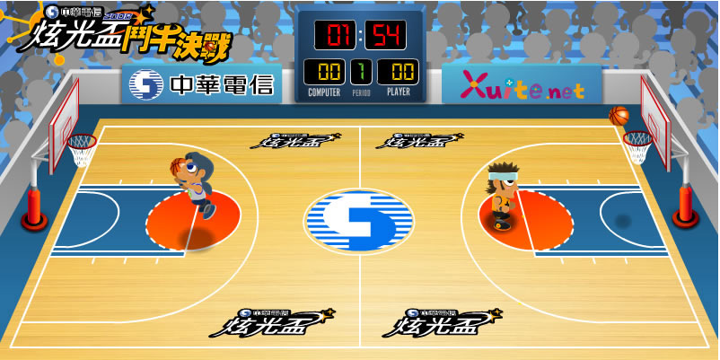 Ça y est vous êtes passé pro ! C'est le jour J et vous devez montrer ce que vous valez. Postez-vous sur l'étoile jaune (au sol) et essayez de marquer un maximum de paniers. Mais pour cela faites attention à ce que la bande blanche soit exactement au centre de la barre de puissance. Ce jeu se joue avec les touches fléchées pour bouger et la barre d'espace pour tirer.