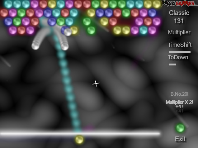 Découvrez Operation B, un nouveau Bubble Shooter très sympa, quoiqu'un peu flou sur les bords ! Dans ce jeu, vous allez devoir lancer des bulles colorées pour les grouper par 3 ou plus, et ainsi toutes les faire tomber. Il faudra évidemment éviter qu'elles ne remplissent l'écran en entier, car cela marquerait la fin de votre partie. Vous pourrez jouer différents modes de jeu, faites votre choix ou mieux, essayez-les tous pour savoir lequel vous conviendra le mieux. Amusez-vous bien et tentez coûte que coûte de battre votre record. Bonne chance ! Utilisez la souris pour jouer à ce jeu.