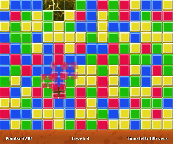 Quick Fire Match 3 est un nouveau jeu dont le but est de supprimer des formes colorées pour les faire disparaître du jeu. Vous ne pouvez cliquer que sur les groupes composés de 3 blocs identiques ou plus. Au fur et à mesure des niveaux, il y aura de plus en plus de couleurs à faire disparaître. Si vous laissez des blocs à la fin d'un niveau, vous perdrez des points et votre score sera moins élevé. Réfléchissez bien et lancez-vous ! Utilisez la souris pour jouer à ce jeu.