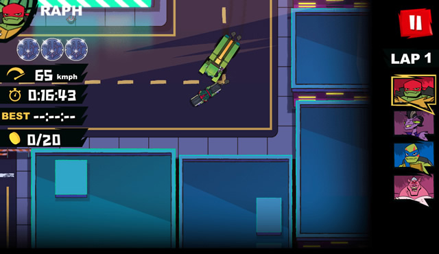 Road Riot - TMNT est un jeu de course vu de dessus dans lequel vous allez rejoindre les Tortues Ninja ! Faites la connaissance de ces héros charismatiques amateurs de pizza et roulez à toute vitesse dans les principales voies de la ville. Contournez les véhicules déjà garés un peu partout, évitez les obstacles et collectez des bonus qui vous permettront de tirer sur les autres joueurs pour les neutraliser, au moins temporairement. Tentez de battre un record coûte que coûte et surtout, amusez-vous bien ! Utilisez les touches fléchées pour vous déplacer et Espace pour tirer.