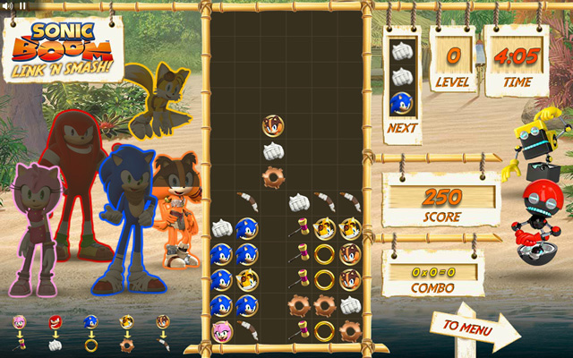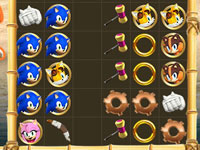 Sonic, le hérisson bleu téméraire que nous connaissons bien, repart à l'aventure. Dans un jeu de combinaisons ressemblant à Aztec Blocks, vous allez devoir permuter des symboles durant leur chute pour qu'ils se positionnent à l'endroit souhaité dans la grille. Pour marquer des points, 2 symboles identiques devront se trouver sur une case adjacente à un personnage qui les concerne. Associez donc Knuckles et des poings, Amy et des marteaux, Tails et des rouages, Sticks et des boomerangs, ou Sonic et des anneaux. Si la grille se remplit entièrement, le jeu sera fini pour vous ! Utilisez les flèches directionnelles pour jouer à ce jeu.