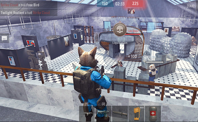 Utilisez les flèches du clavier ou les touches WASD pour vous déplacer, la barre d'espace pour sauter, la souris pour viser et tirer, C pour vous accroupir, M pour afficher la carte, 1-5 pour sélectionner un objet, R pour recharger et T pour ouvrir le chat.