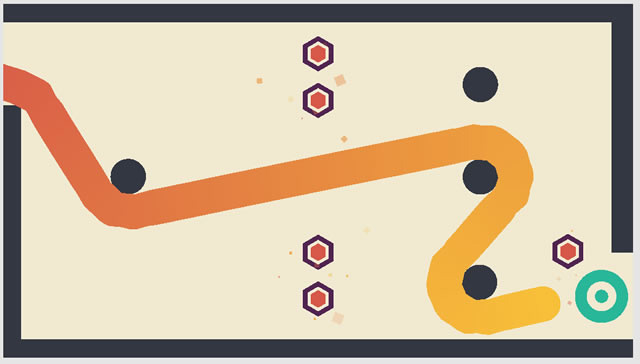 Wrap est un jeu très original dans lequel vous allez contrôler un ver orange et jaune qui cherche désespérément à rejoindre un point vert. A vous de faire en sorte qu'il puisse y arriver, en choisissant le chemin le plus court et le plus pratique pour cela. Contournez les obstacles, évitez soigneusement de toucher les zones rouges, sinon vous perdrez la partie et vous n'aurez plus qu'à recommencer du début. Les niveaux seront de plus en plus complexes et le chemin que votre ver devra suivre le sera aussi. Bon jeu à tous et amusez-vous bien ! Utilisez la souris pour jouer à ce jeu.